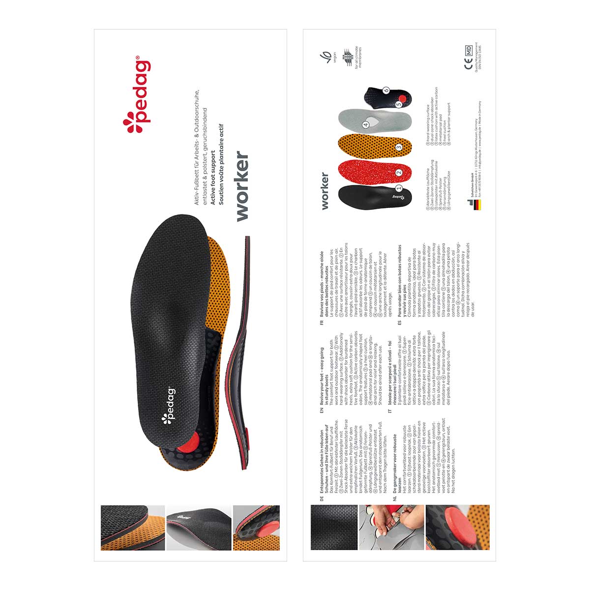 Aktiv-Schuheinlage Worker von pedag: Das Fussbett für Arbeits- und Outdoorschuhe für entspanntes Gehen und mehr Hygiene: anatomisch geformt, abriebfeste Lauffläche, Aktivkohle gegen Gerüche.