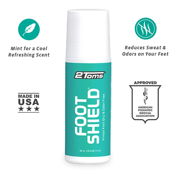 2Toms FootShield bildet eine Geruchs- und Schweissbarriere, so dass die Füsse trocken und geruchsfrei bleiben.