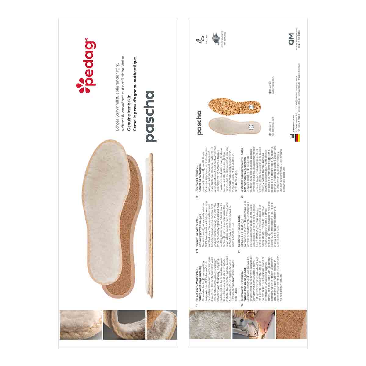 Wärmende & kuschelige Lammfellsohle Pascha: Diese  Einlegesohlen von pedag verwöhnen ihre Füsse mit echtem Lammfell und isolierendem Kork. Für natürlich warme Füsse.