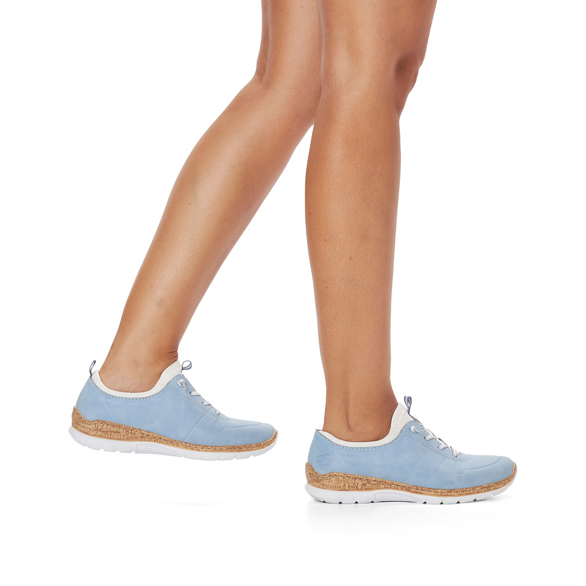 Diese himmelblauen Damen-Slipper von Rieker sind superbequem.