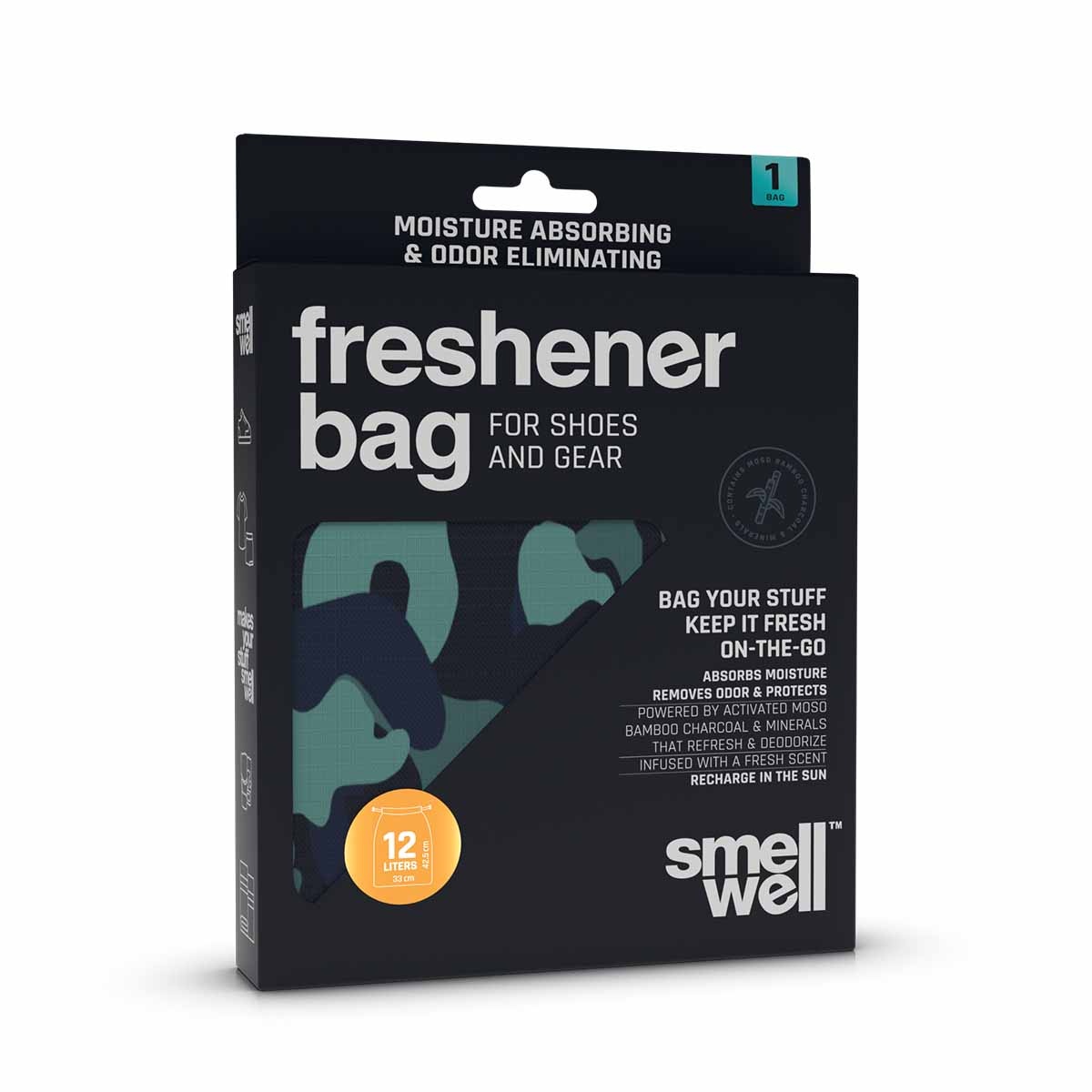 Freshener Bag von SmellWell - Ihr zuverlässiger Begleiter für frische und hygienische Schuhe und Sportausrüstung. Aussergewöhnlich langlebig, neutralisiert Gerüche, absorbiert Feuchtigkeit und besteht aus nachhaltigen Materialien. Ein Must-Have für aktive Menschen!