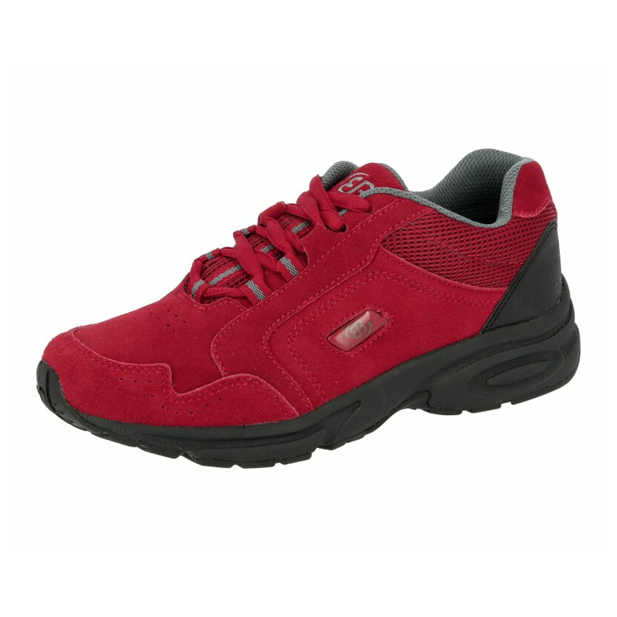 Hinaus in die Natur geht es mit dem Walkingschuh und Outdoorschuh Circle in rot für Damen von Brütting. Erstes Highlight ist das Obermaterial aus geschmeidigem Veloursleder.